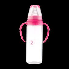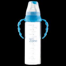 سعة بيبي زون رضاعة بلاستك بيدين هي 240 مل.