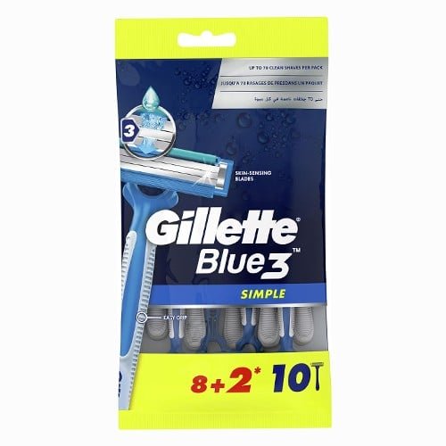 جيليت ماكينة حلاقة بلو3 سمبل 8 + 2 حبة مجاناً، تجربة حلاقة سلسة ونظيفة. شفرات حادة للغاية للحلاقة دقيقة تناسب البشرة الحساسة شريط جل لترطيب البشرة تصميم مريح ومقبض سهل الإمساك.