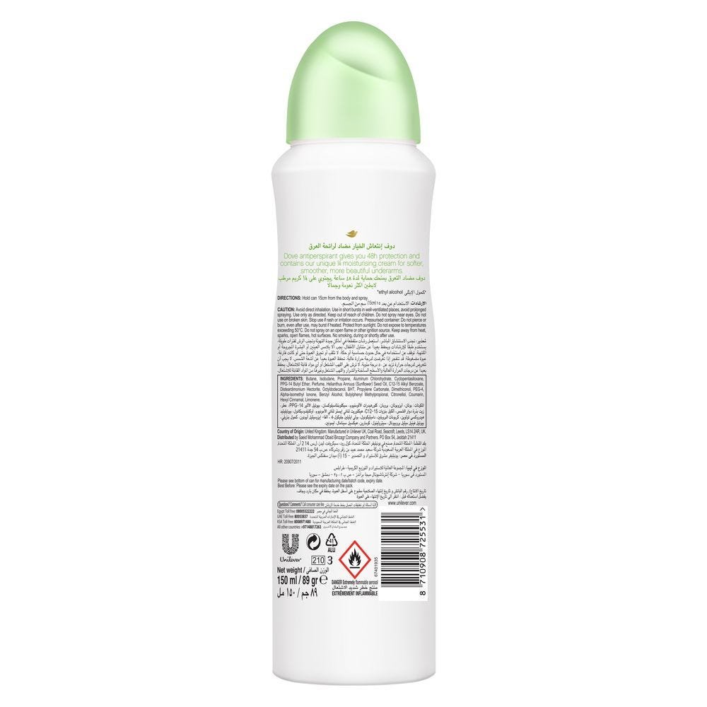 دوڤ مزيل العرق انتعاش الخيار والشاي الأخضر، بخاخ 150 مل