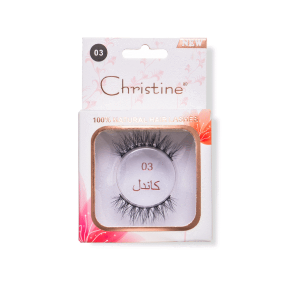 كرستين رموش شعر طبيعي 03 هي رموش عملية تمنح العينين كثافة أجمل ولمسة طبيعية مرتبة بدون مبالغة. تصميم 03 مناسب للخروجات والمناسبات الخفيفة، ويعطي العين سحبة وشكل أوضح مع إحساس خفيف ومريح، وتقدري تتحكمي في النتيجة بدمجها مع الماسكارا حسب رغبتك.