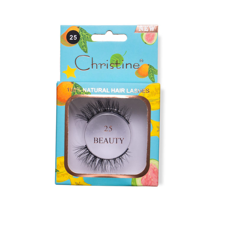 كرستين رموش شعر طبيعي 25 هي رموش صناعية بخامة وشكل قريب من الرموش الطبيعية، بتدي العين كثافة وطول بشكل أنيق ولمسة مرتبة. موديل 25 مناسب للطلعات والمناسبات، وكمان ينفع يوميًا لو بتحبي رموش أوضح شوية (حسب اللوك).