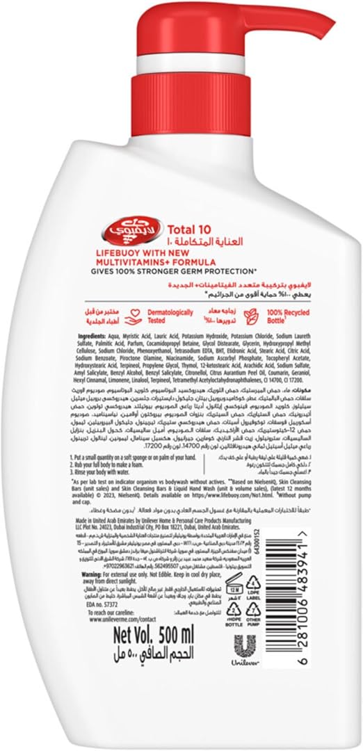 ولأننا نهتم ببشرتك وبكوكبنا معاً، فقد صُممت التركيبة لتكون مختبرة من قبل أطباء الجلدية، وهي مناسبة تماماً لجميع أنواع البشرة دون أن تسبب جفافاً. كما نلتزم بالمسؤولية البيئية، حيث إن العبوة مصنوعة بالكامل من مواد معاد تدويرها بنسبة 100%. استمتع بنظافة عميقة وحماية لا تضاهى مع لايفبوي غسول الجسم.