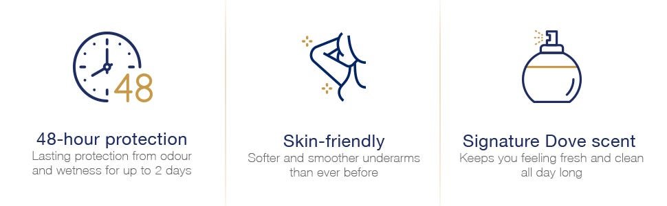 مزيل العرق الأصلي من دوڤ: حماية 48 ساعة، عناية فائقة للبشرة، رائحة منعشة، تركيبة مرطبة.