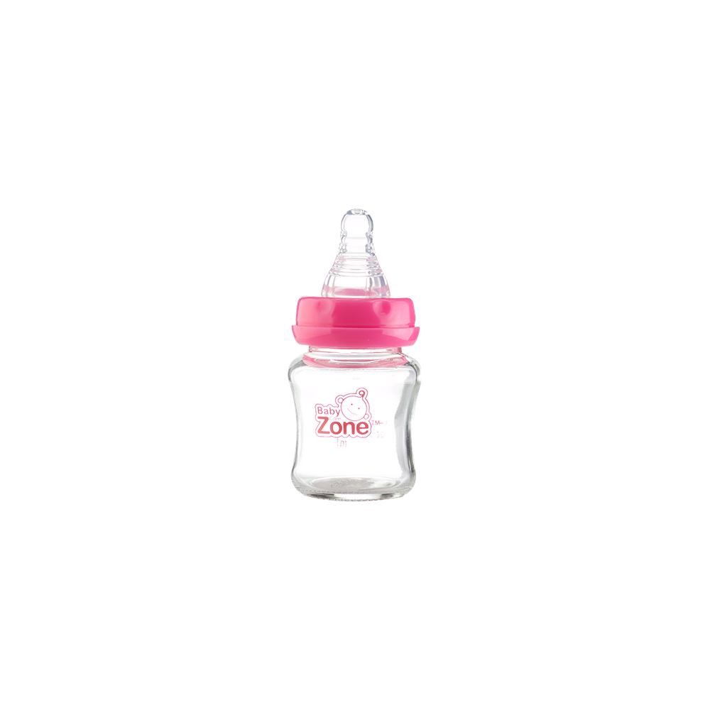 بيبي زون رضاعة أطفال زجاج 60 مل. آمنة، مريحة، وسهلة التنظيف. مثالية للرضعات الصغيرة، مصنوعة من زجاج عالي الجودة خالٍ من BPA. خياركم الأمثل لصحة طفلكم.