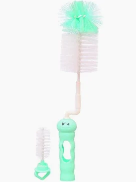 الفرشة مصممة بشكل عملي يحتوي على فرشتين: فرشة كبيرة لتنظيف الرضاعة من الداخل، وفرشة صغيرة مخصصة لتنظيف الحلمات والأجزاء الدقيقة. الشعيرات قوية ومرنة في نفس الوقت لإزالة بقايا اللبن بدون خدش، مع يد مريحة تسهل الاستخدام. مصنوعة من خامات آمنة ومناسبة للاستخدام اليومي.