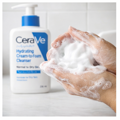 سيرافي كريم رغوي منظف ومرطب للبشرة 236 مل منظف وجه يومي بتركيبة Cream-to-Foam: يبدأ ككريم لطيف ثم يتحول إلى رغوة ناعمة مع الماء لتنظيف البشرة وإزالة الزيوت والمكياج دون الإخلال برطوبتها أو تركها مشدودة. يدعم حاجز البشرة بفضل السيراميدات الأساسية وحمض الهيالورونيك، وهو خالٍ من العطور وغير مسبّب لانسداد المسام. CeraVe+2CVS+2