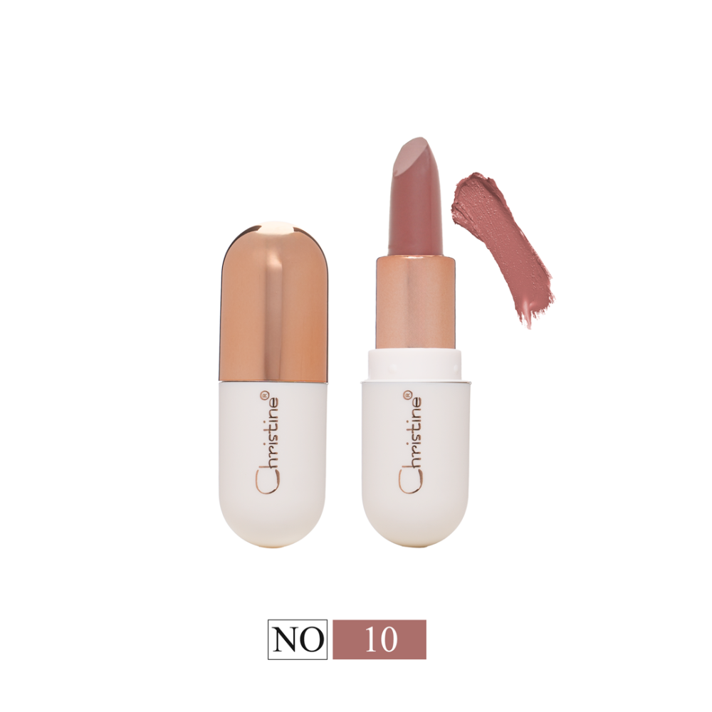 كرستين روج شفاه ميني جاف 10 بتركيبة خفيفة بتجف على الشفاه بلمسة مات (مطفية) مريحة. حجمه الصغير بيخليه مثالي للاستخدام اليومي وسهل الحمل في الشنطة للتجديد السريع.