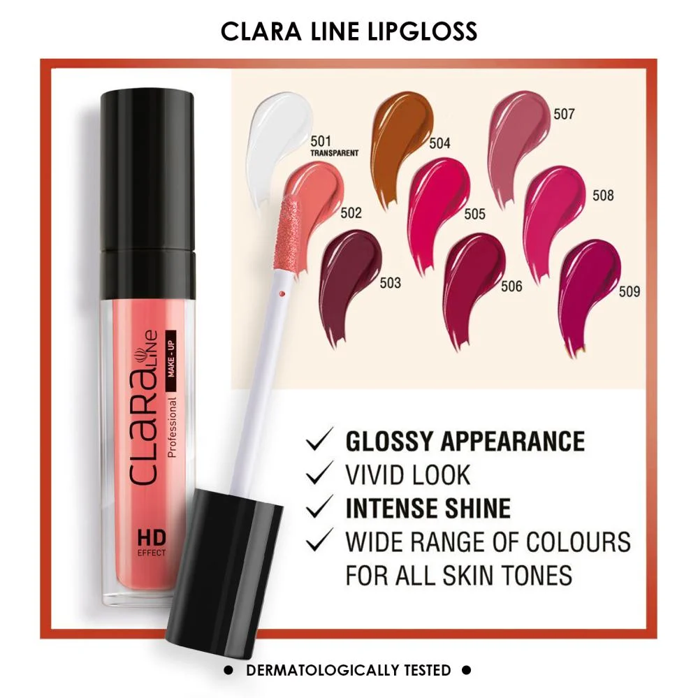 ملمع شفاه كلارا لاين 501: يمنح شفتيك لمعانًا جذابًا وترطيبًا عميقًا بتركيبة خفيفة وغير لاصقة تدوم طويلاً. تألقي بإشراقة لا مثيل لها.
