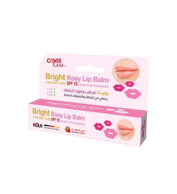كوفيكس كير برايت مرطب ومورد للشفاه بنكهة الفراولة 15 مل هو بلسم شفاه بتركيبة مغذية بيساعد على ترطيب الشفاه