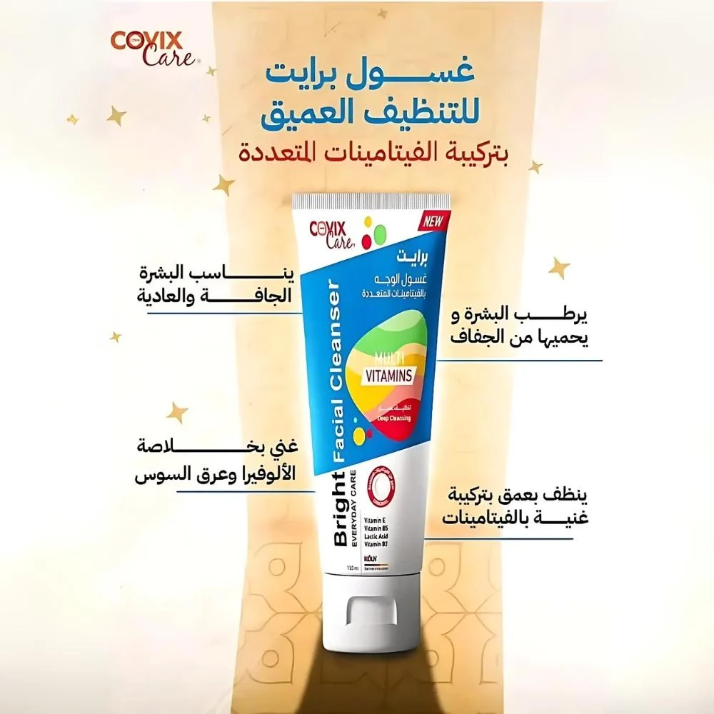 كوفيكس كير برايت غسول الوجه بالفيتامينات المغذية 150 مل هو غسول بتركيبة غنية بالفيتامينات بيساعد على تنظيف البشرة