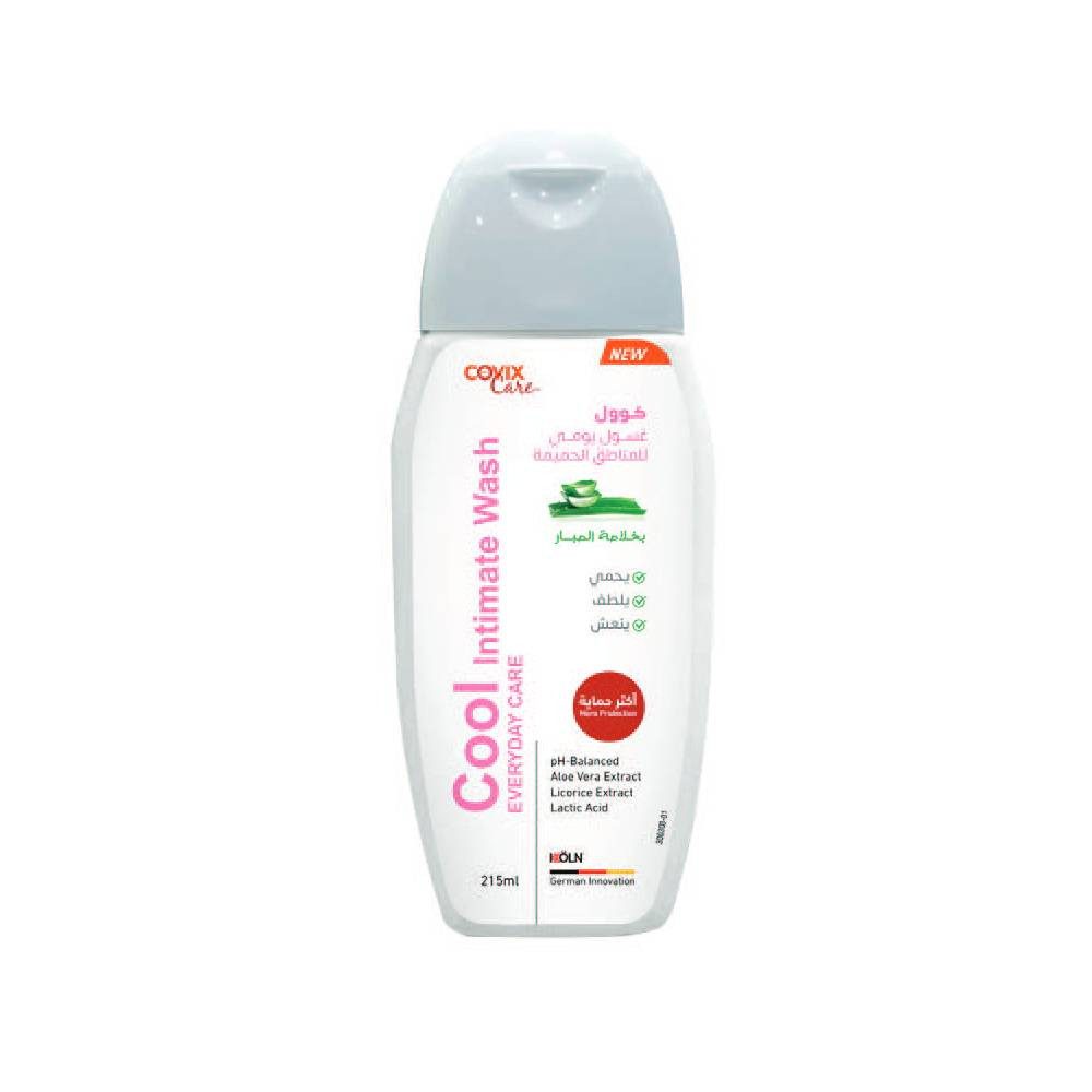 كوفيكس كير كول غسول يومي للمناطق الحساسة بالصبار 215 مل هو غسول لطيف بتركيبة مهدئة يحتوي على الصبار، بيساعد على تنظيف المناطق الحساسة بلطف مع ترطيبها وتهدئتها ومنح إحساس بالنظافة والانتعاش.