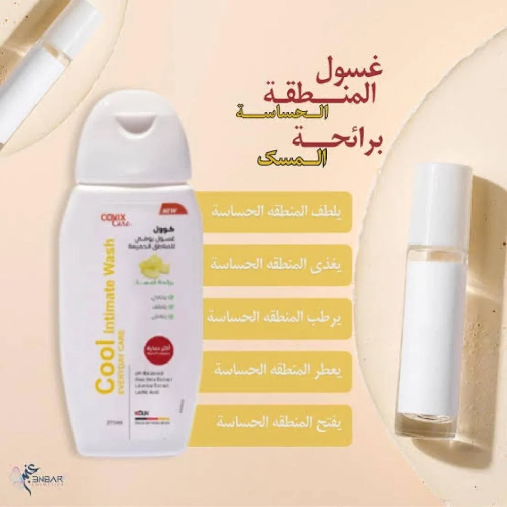 كوفيكس كير كول غسول بالمسك الأبيض بتركيبة متوازنة بيساعد على تنظيف المنطقة الحساسة مع الحفاظ على التوازن الطبيعي للبشرة، ويمنح إحساس دائم بالانتعاش ورائحة عطرية لطيفة بفضل المسك الأبيض المعروف بخصائصه المنعشة.