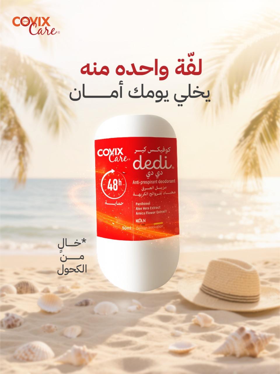 كوفيكس كير دي دي رول أون مضاد للتعرق بتركيبة خفيفة وسريعة الامتصاص، بيوفر حماية فعالة تدوم حتى 48 ساعة، مع مكونات مهدئة ومرطبة زي الألوفيرا والبانثينول، اللي بتساعد على تقليل التهيج والحفاظ على راحة البشرة.