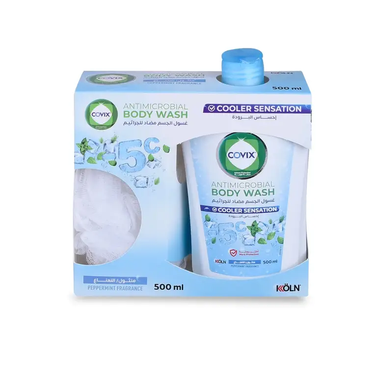 كوفيكس كير غسول الجسم كول فريش بتركيبة فعالة مضادة للبكتيريا، بيساعد على تنظيف البشرة وتطهيرها مع الحفاظ على نعومتها، بينما يمنحك النعناع والمنثول إحساس منعش وبارد يدوم بعد الاستحمام، ومع الليفة المرفقة يوفر تقشير لطيف وتجديد للبشرة.
