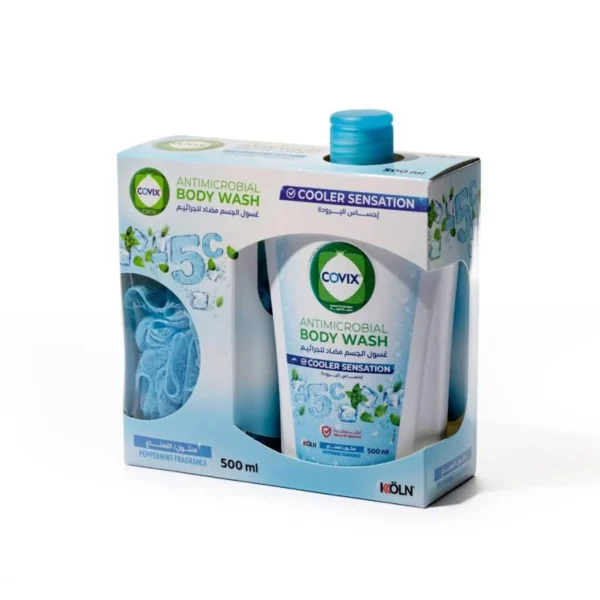كوفيكس غسول الجسم المضاد للجراثيم كول فريش مع ليفة 500 مل