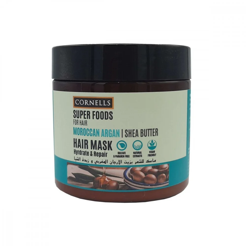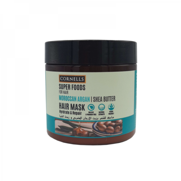 هو ماسك شعر مغذي من مجموعة Cornells Superfoods غني بزيت الأرجان المغربي وزبدة الشيا، مصمم لترطيب الشعر بعمق وإصلاح التلف ومنحه نعومة ولمعان واضح.