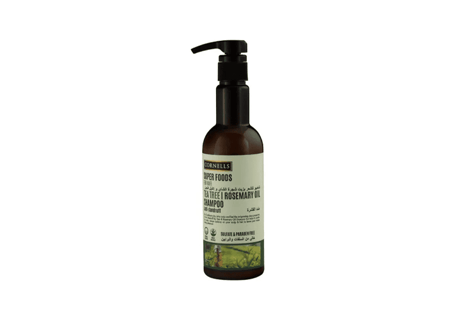 كورنلز شامبو زيت شجرة الشاي وإكليل الجبل 500 مل: ينظف فروة الرأس الدهنية بعمق، يقاوم القشرة، ينشط البصيلات، ويترك الشعر ناعمًا. خالٍ من السلفات.
