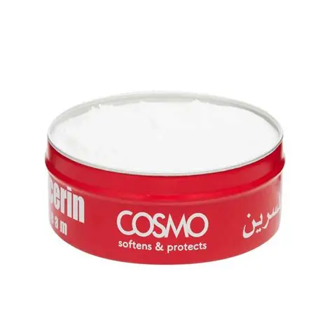 - ترطيب عميق ومستمر: يوفر كوزمو كريم جلسرين مرطب عميق للبشرة ترطيبًا يدوم لساعات طويلة، محاربًا الجفاف بفعالية.