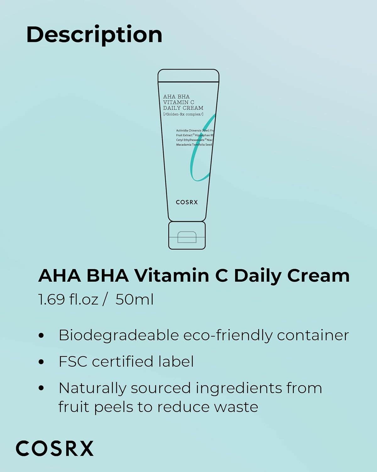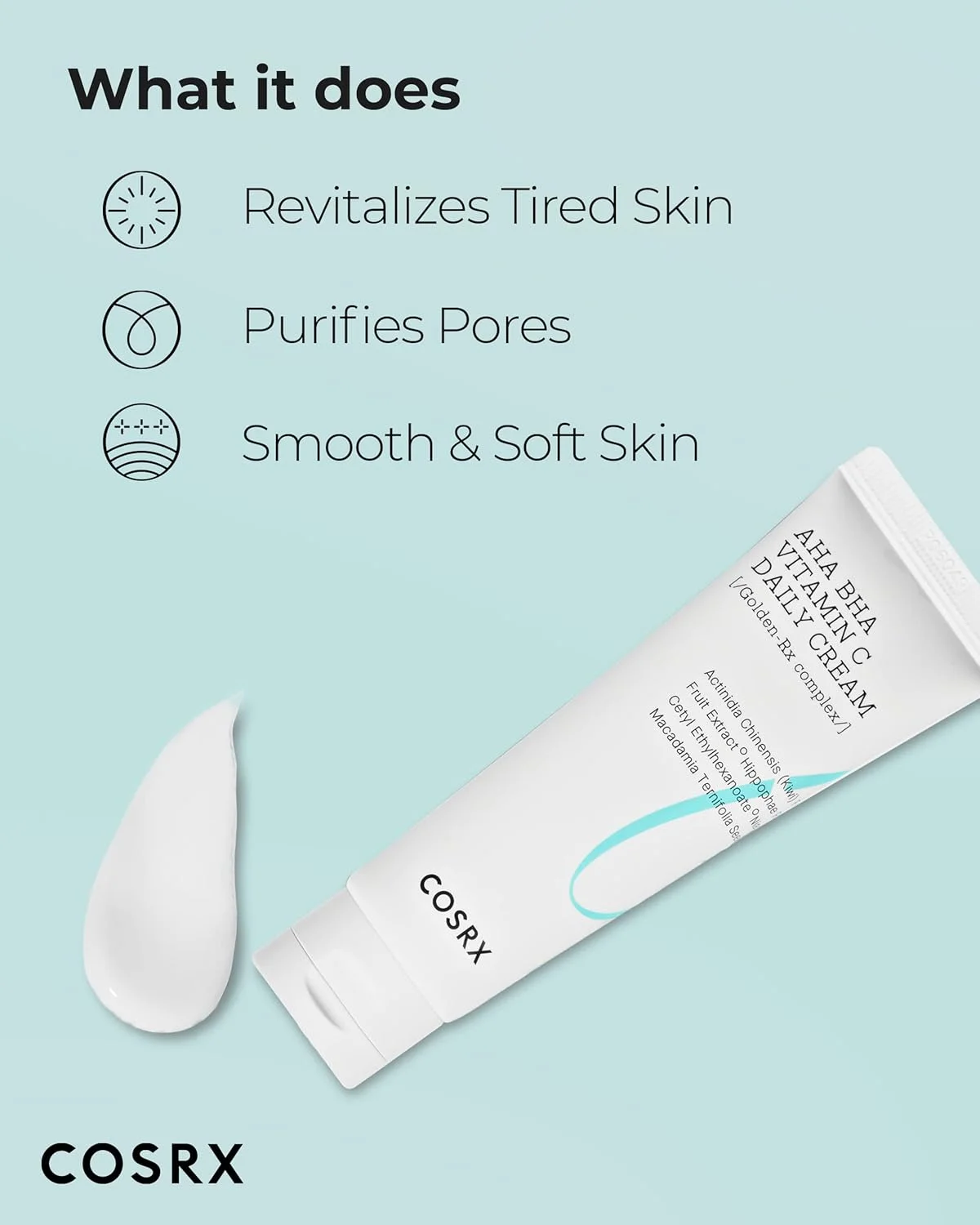كوزركس كريم يومي منعش بفيتامين سي وأحماض AHA/BHA لتحسين ملمس وإشراق البشرة.