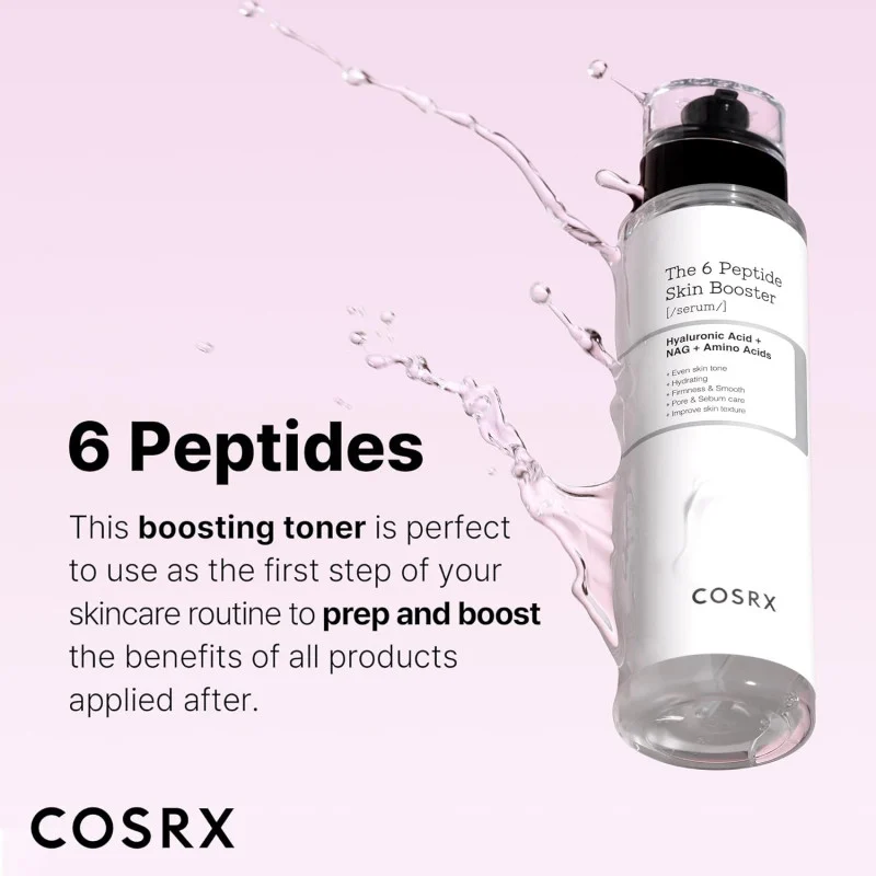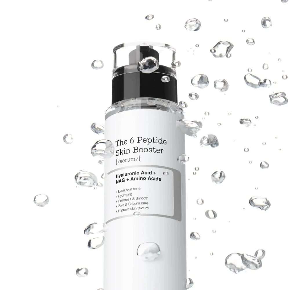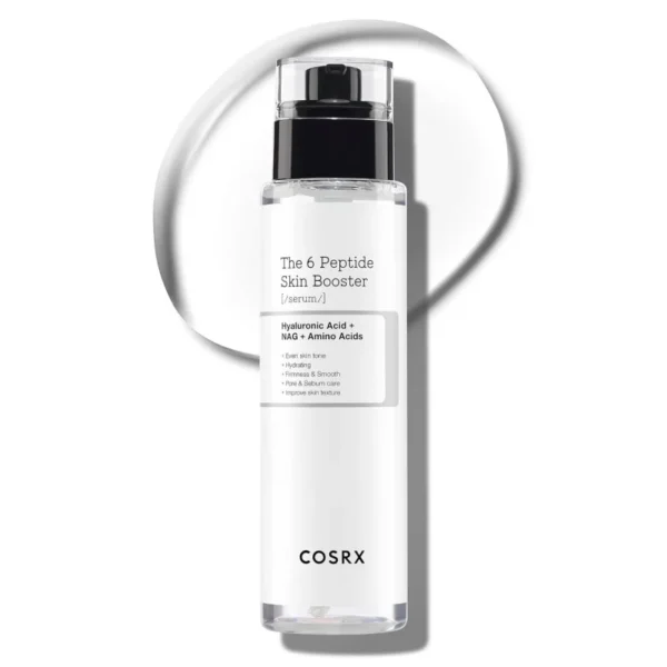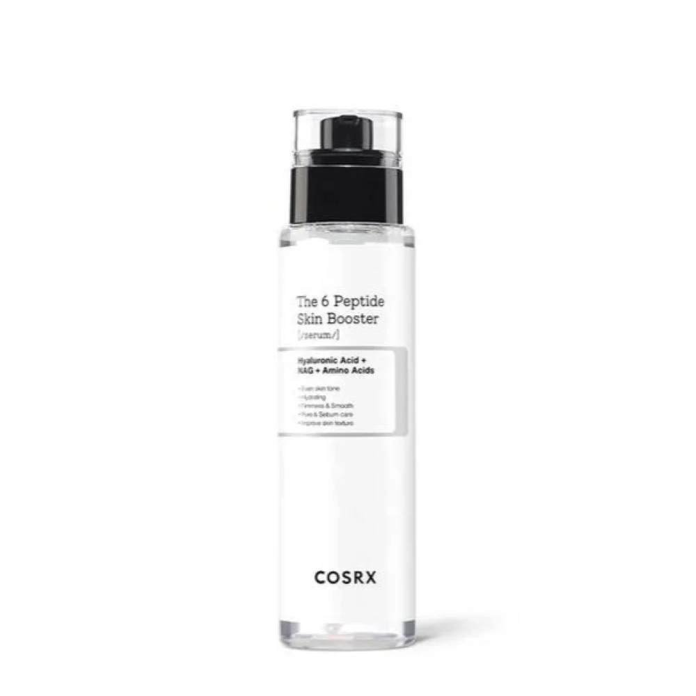 كوسركس 6 Peptide Booster Serum بتركيبة متطورة تحتوي على 6 أنواع من الببتيدات مع حمض الهيالورونيك والأحماض الأمينية، مما يساعد على تعزيز إنتاج الكولاجين وتحسين ملمس البشرة وترطيبها بعمق، مع دعم نضارتها وإشراقتها