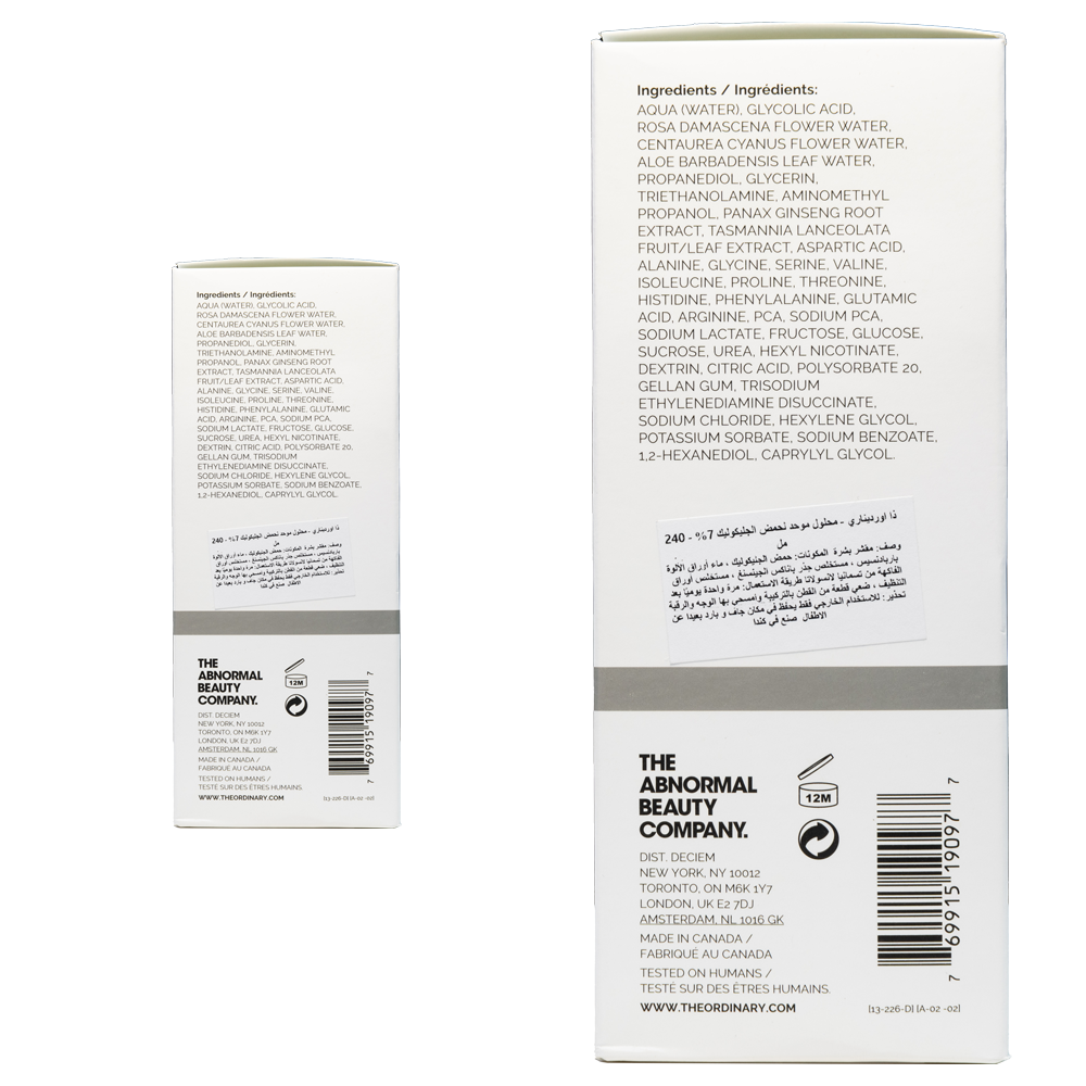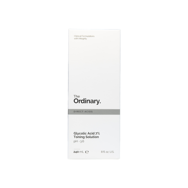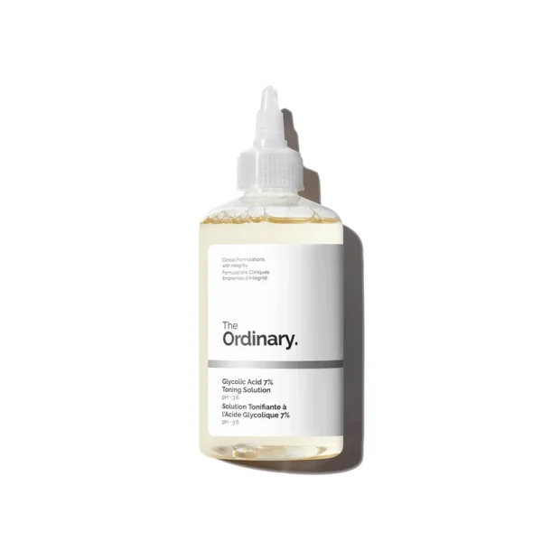 ذا أورديناري تونر مقشر بحمض الجليكوليك 7% – 240 مل هو تونر فعال يساعد على تقشير البشرة بلطف وإزالة الخلايا الميتة