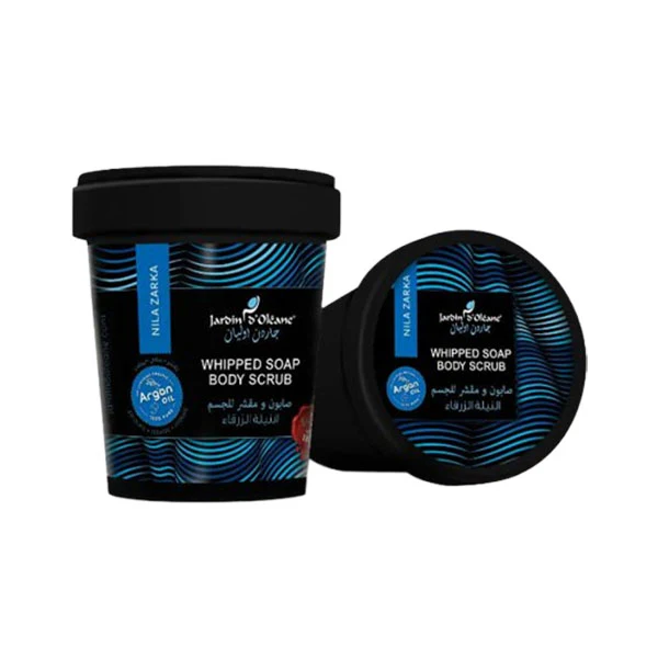 مقشر الجسم بالنيلة الزرقاء من جاردن اوليان. يزيل خلايا الجلد الميتة، يفتح البشرة، يوحد لونها، ويرطبها بفضل فيتامين E. لبشرة ناعمة، نضرة، ومتجددة.