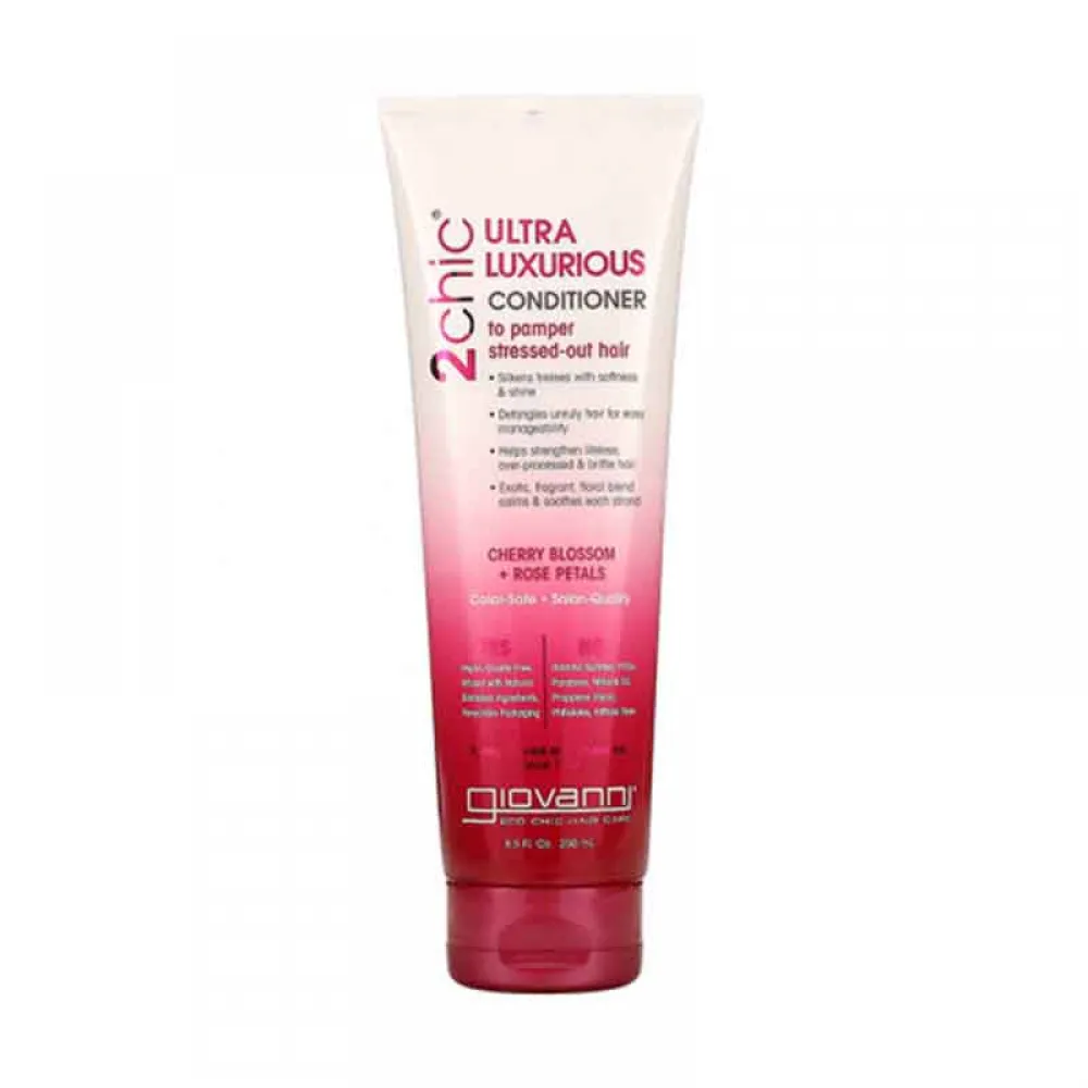 جيوفاني بلسم الترف الفائق بزهور الكرز وبتلات الورد 250 مل. بلسم فاخر يحمي الشعر المصبوغ، يرطب بعمق، ويمنح لمعانًا وحيوية. خالٍ من البارابين والكبريتات.