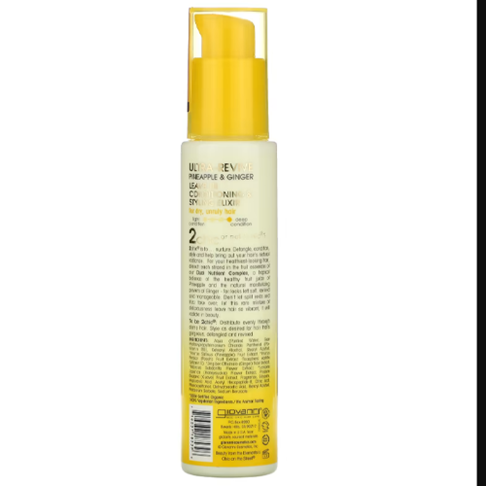 وداعاً للتجعد! سيروم جيوفاني الترا ريفايف 81 مل يمنحك شعراً ناعماً، لامعاً، وسهل التسريح بفضل مستخلصات الأناناس والزنجبيل الطبيعية. استعيدي حيوية شعرك الآن.