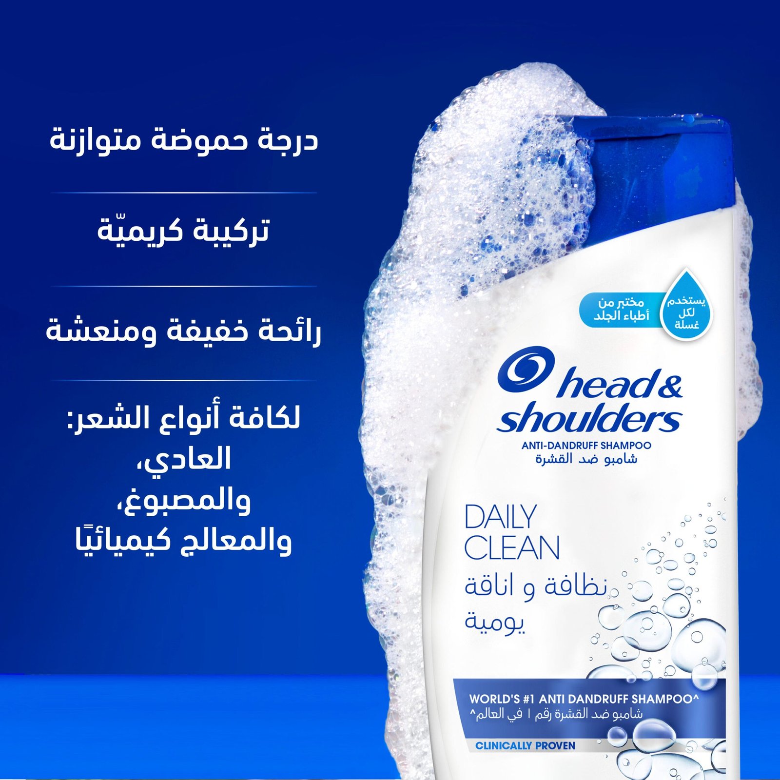 هيد اند شولدرز شامبو يوميّ فعال يُزيل القشرة ويمنحك شعراً صحياً لامعاً. يُزيل حتى 100% من القشرة الظاهرة مع الاستخدام المنتظم. تركيبة مُثبتة علمياً تحتوي على بيروكتون أولامين، لمحاربة الميكروب المسبب للقشرة. يُسيطر على تقشّر فروة الرأس والحكة. مناسب لجميع أنواع الشعر. رائحة منعشة تدوم طويلاً. العلامة التجارية رقم 1 عالمياً في الشامبو ضد القشرة.
