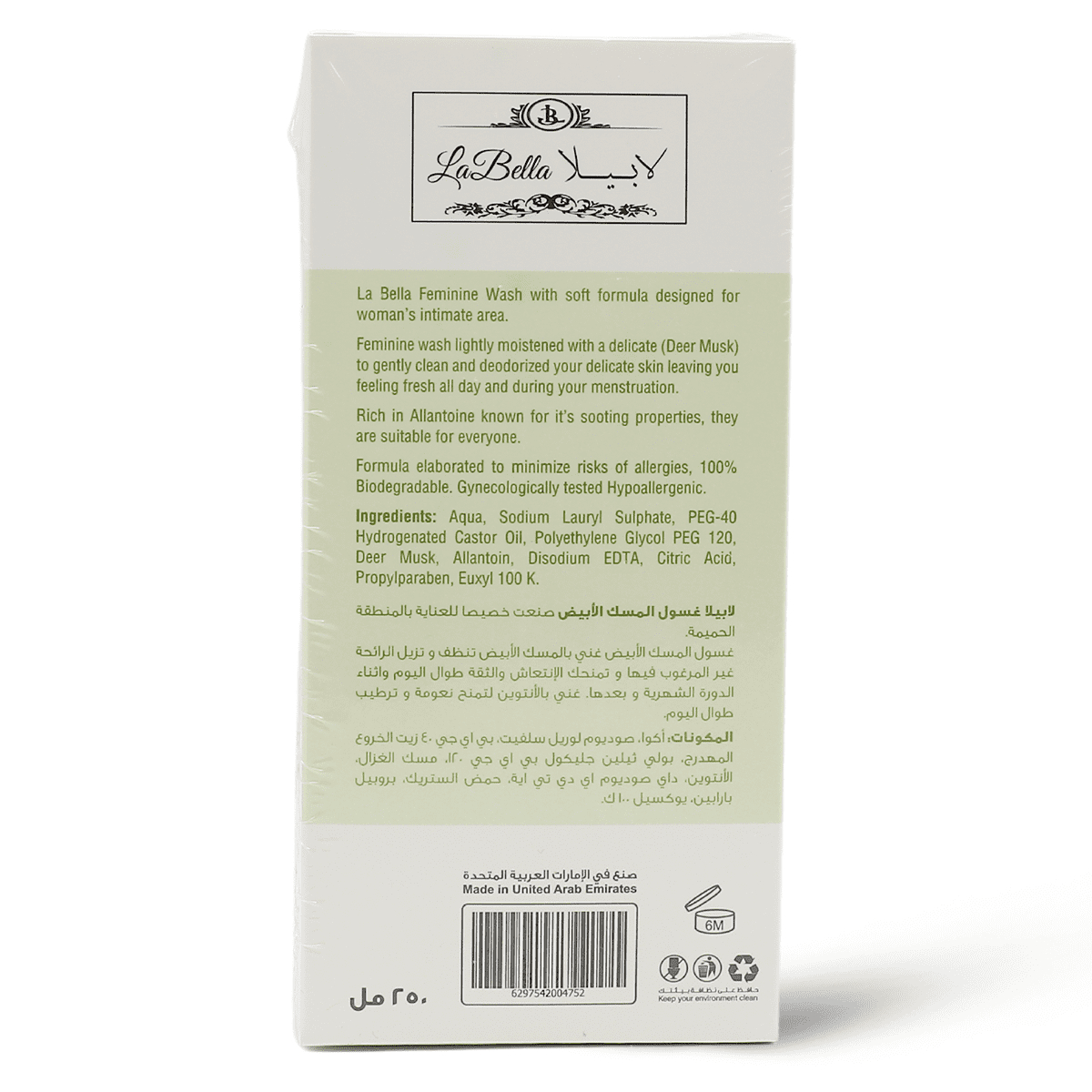 يتميز غسول لابيلا المسك الابيض بأنه متوازن الرقم الهيدروجيني، مما يعني أنه ينظف بلطف دون الإخلال بالتوازن الحمضي الطبيعي للبشرة. هذا التوازن هو سر فعاليته؛ حيث يطهر المنطقه من البكتيريا الضارة المسببة للرائحة، مع الحفاظ على البكرتيا النافعة التي تحميها. كما أنه آمن للاستخدام اليومي، ولا يؤدي إلى إسمرار أو حكة أو أي إزعاج، مما يمنحكِ شعورًا دائمًا بالنظافة والانتعاش برائحة المسك الأبيض الخفيفة والجميلة بعد كل استخدام.