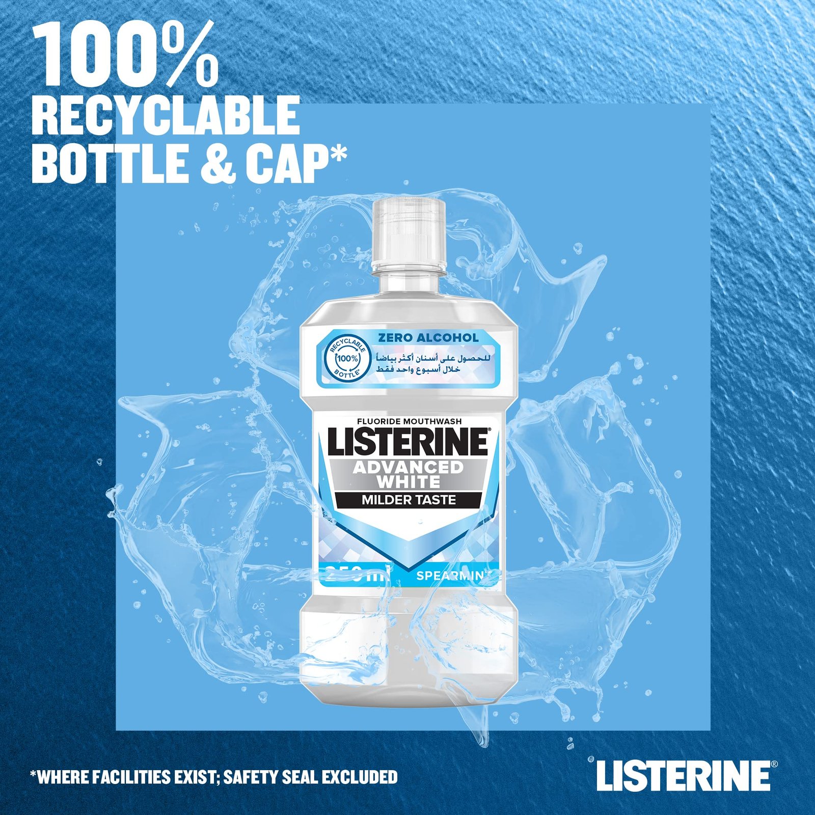 إن اختيار ليسترين غسول فم ادفانسد وايت للأسنان يعني اختيارك لصحة فم مثالية وانتعاش لا مثيل له. ثق بليسترين، العلامة التجارية الرائدة في مجال صحة الفم، لتزويدك بأفضل الحلول للعناية بأسنانك ولثتك.
