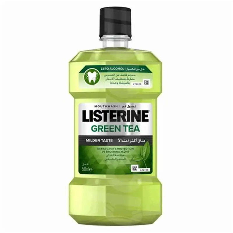 اكتشف ليسترين غسول الفم بالشاي الأخضر 500 مل. يوفر حماية فائقة ضد البكتيريا، يمنح نفساً منعشاً، ويعزز صحة اللثة والأسنان بفضل خصائص الشاي الأخضر الطبيعية. انتعاش يدوم ونظافة تامة!