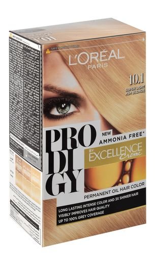 صبغة شعر لوريال بروديجي 10.1 بلون أشقر رمادي فاتح جدًا، خالية من الأمونيا. تقنية الزيوت تمنح تغذية ولمعانًا وتغطية مثالية للشعر الأبيض. تجربة صبغ مريحة ونتائج احترافية.