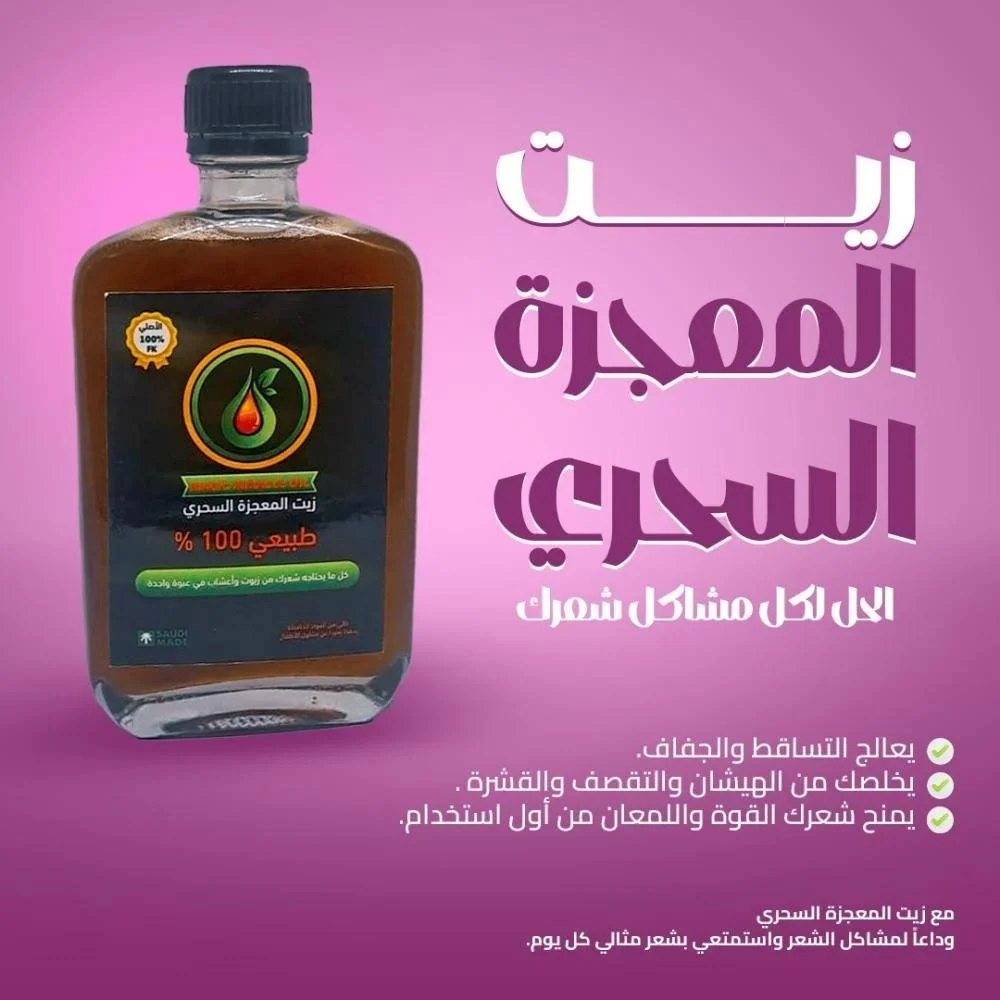 اكتشف زيت المعجزة زيت معجزة للشعر 200 مل عضوي، الحل الطبيعي 100% لنمو الشعر، تقويته، وترطيبه. تركيبة فريدة من 18 عشبة و 15 زيتًا لشعر صحي وحيوي.
