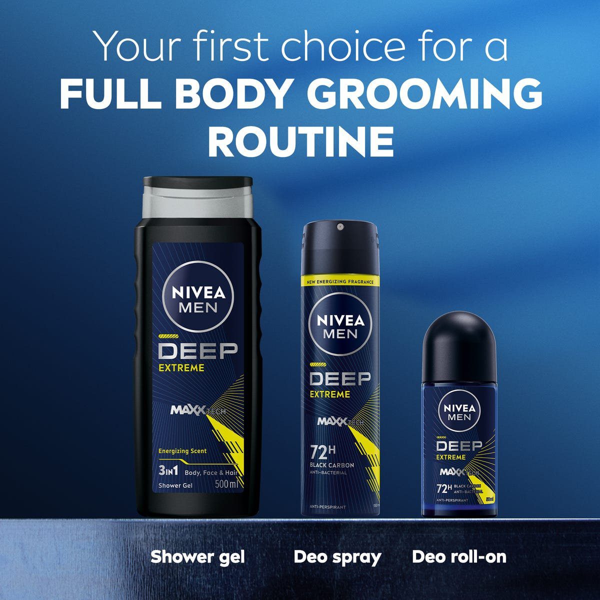 نيڤيا ديب إكستريم للرجال بخاخ مزيل العرق الكربوني الأسود – 72 ساعة انتعاش – 150 مل