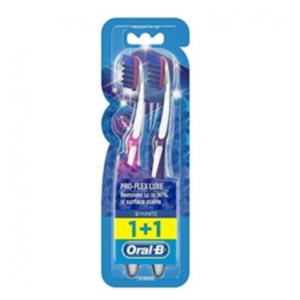 فرشاة اسنان ثرى دي وايت برو فليكس من اورال بي (شعيرات متوسطة) مع عرض 1+1 مجانًا خيار عملي لروتين العناية اليومي بالأسنان، يمنح تنظيفًا مريحًا وإحساسًا أفضل بالنظافة مع الاستخدام المنتظم.