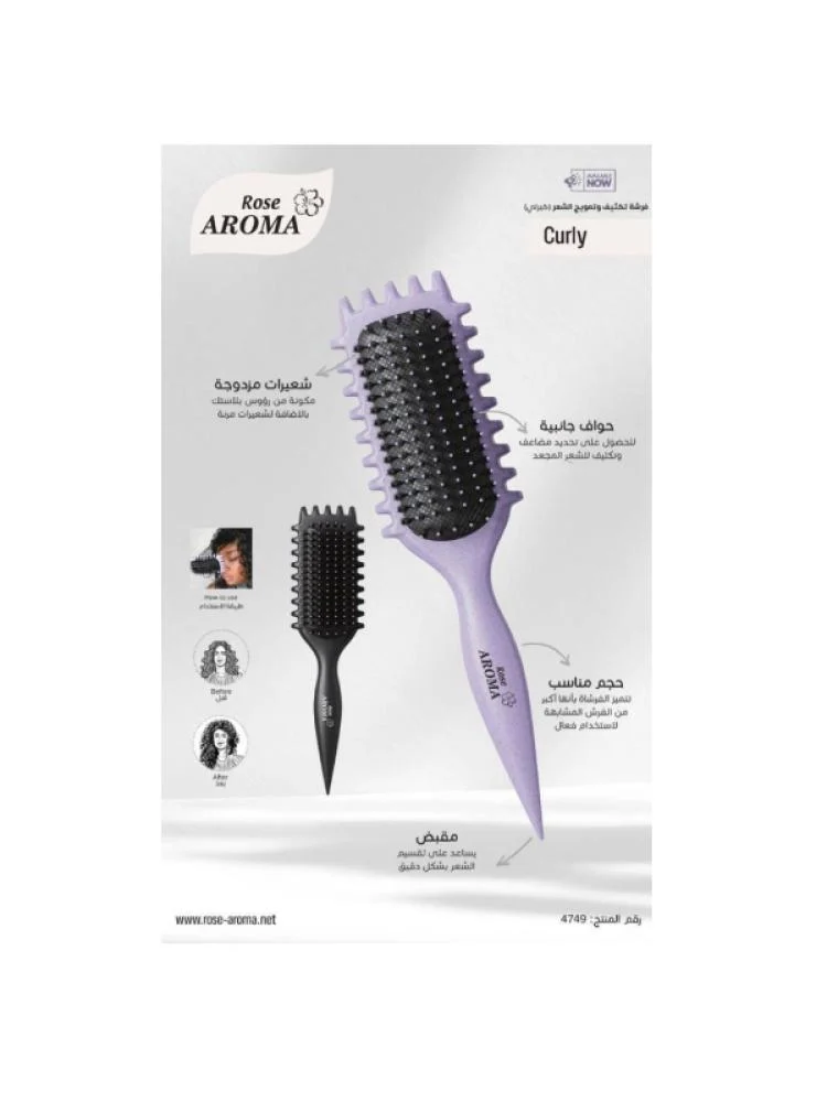 اختاري Rose Aroma فرشة الكيرلي لتجعيد مثالي للشعر المجعد لتكون رفيقتك الدائمة في رحلة العناية بالشعر المجعد. استمتعي بشعر صحي، لامع، محدد، وخالٍ من المشاكل. إنها الأداة المثالية لتحقيق التسريحات الرائعة التي طالما أردتِها.