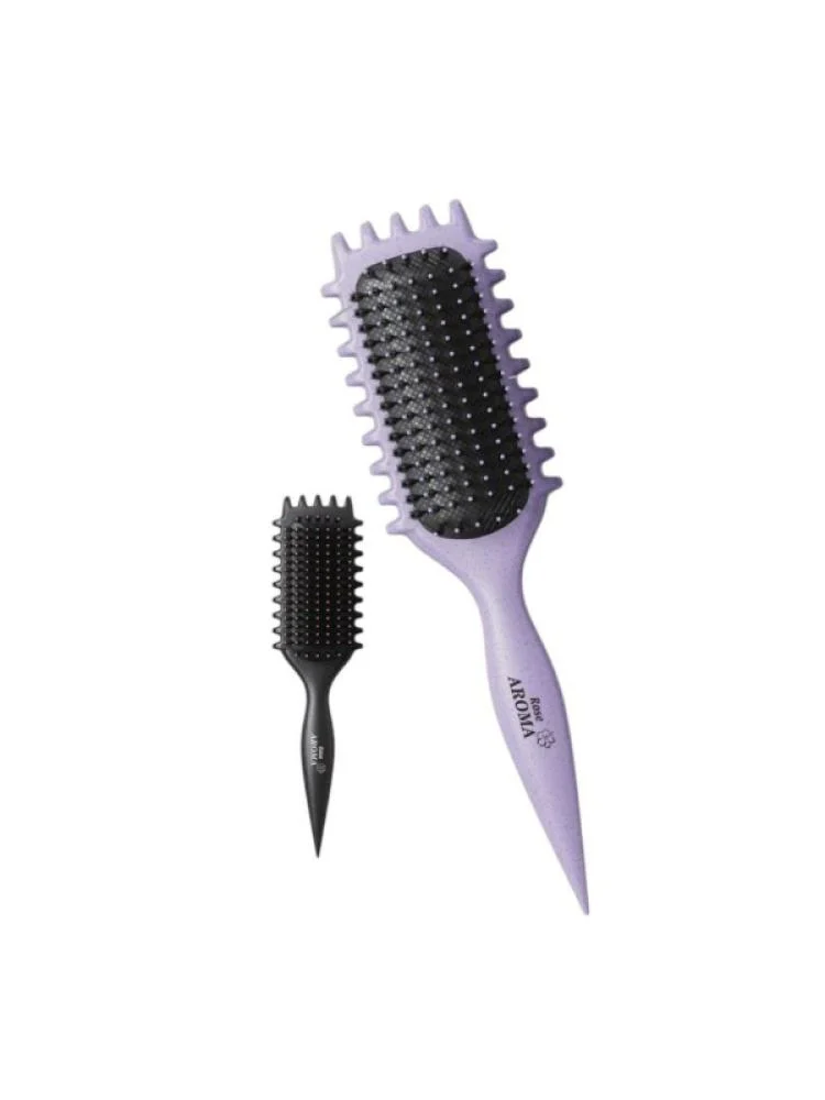 Rose Aroma فرشة الكيرلي: فك تشابك فعال، تجعيدات محددة، ووداعاً للهيشان. مصممة خصيصًا للشعر المجعد لتجربة تمشيط لطيفة ونتائج رائعة.