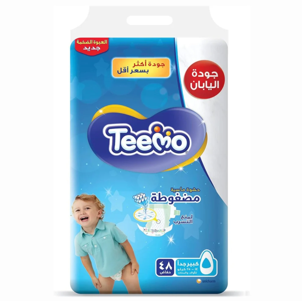 تيمو حفاضات أطفال مقاس 5 توفر راحة فائقة وحماية ضد التسرب بفضل تصميمها المبتكر عالي الامتصاص. عبوة اقتصادية تضم 48 حفاضة لبشرة طفلك الصحية والجافة.