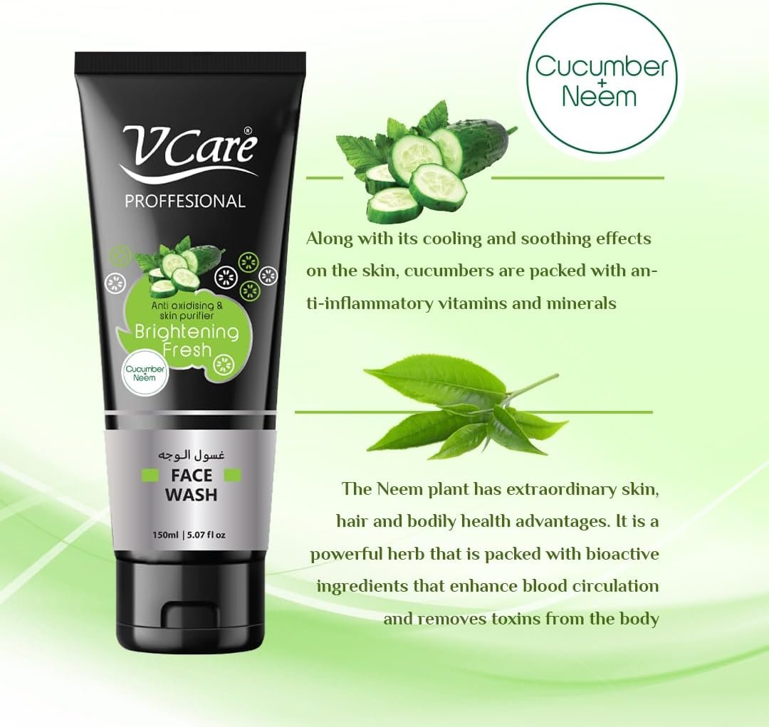 V Care غسول الوجه بالخيار والنيم 150 مل رائع للبشرة المختلطة