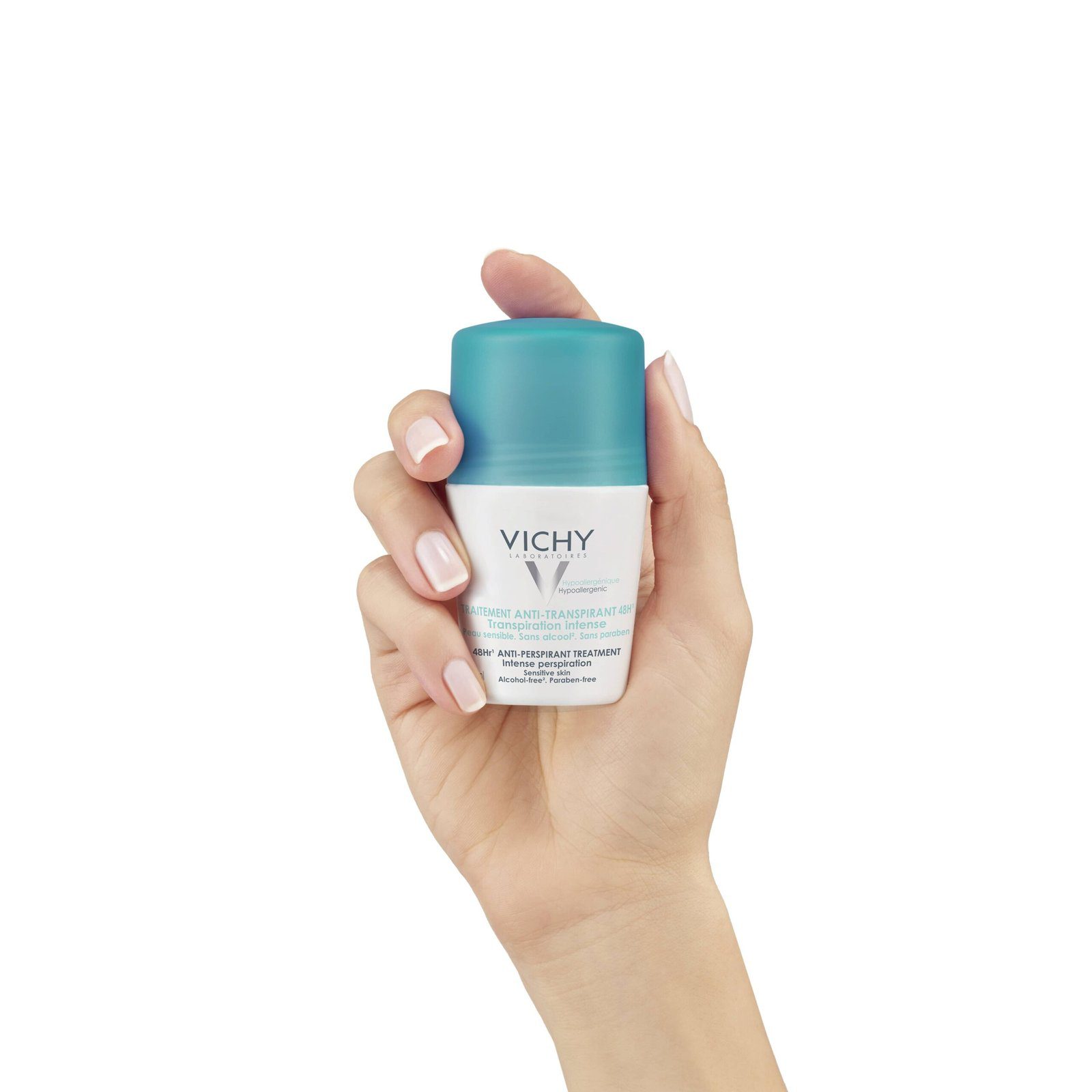حماية تدوم ٤٨ ساعة من التعرق المفرط مع فيشي مزيل العرق، مناسب حتى للبشرة الحساسة.