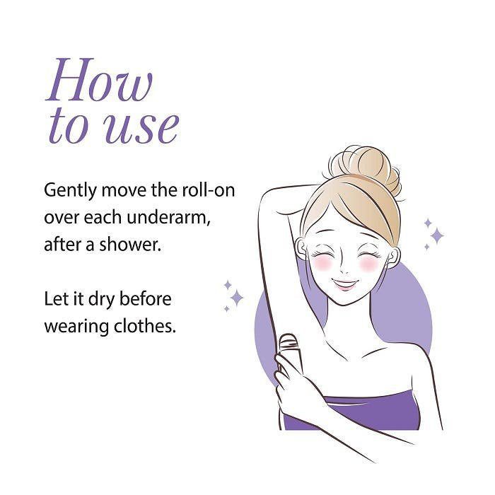 ضعي الرول أون مباشرة على بشرة نظيفة وجافة تحت الإبط.